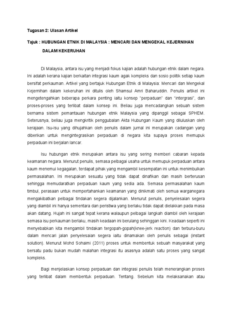 1 2011 1 28. Hubungan etnik assignment doc isi kandungan pendahuluan mukasurat 2 hubungan etnik di malaysia mukasurat 3 4 5 segregrasi akomodasi. Dengan interaksi yang sebenarnya.